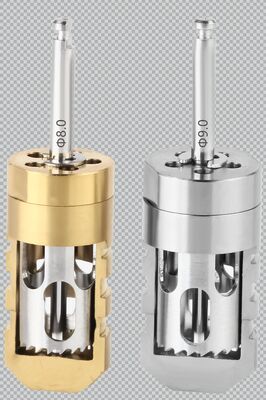 The crescent shaped bone harvesting drill is specifically designed for bone augmentation procedures in dental implant surgery, allowing clinicians to collect uniform bone blocks efficiently. Its unique crescent design ensures precise harvesting while minimizing trauma to surrounding tissue, making it ideal for ridge augmentation and sinus lift procedures.